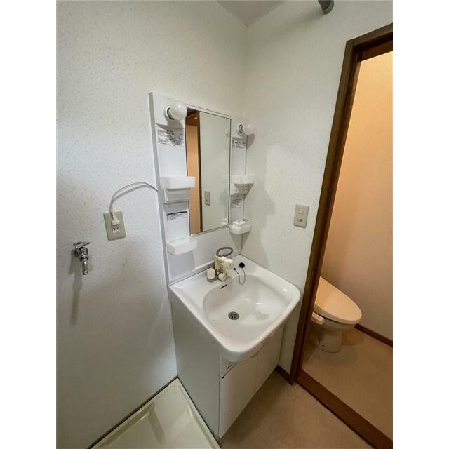 | 設備 | 室内洗濯機置場 シューズボックス モニタ付インターホン シャワー付洗面化粧台 洗面台 バス・トイレ同室 洗濯機置場 給湯 フローリング プロパンガス 駐輪場 照明器具 BS端子 温水洗浄便座 | ||